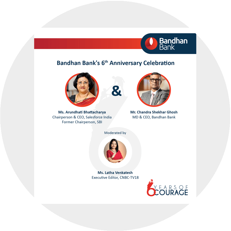 Bandhan Bank turned six on August 23, 2021. We had the pleasure of having Ms. Arundhati Bhattacharya, CEO and Chairperson, Salesforce India and former Chairperson, SBI, as our Chief Guest for the virtual celebration.