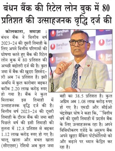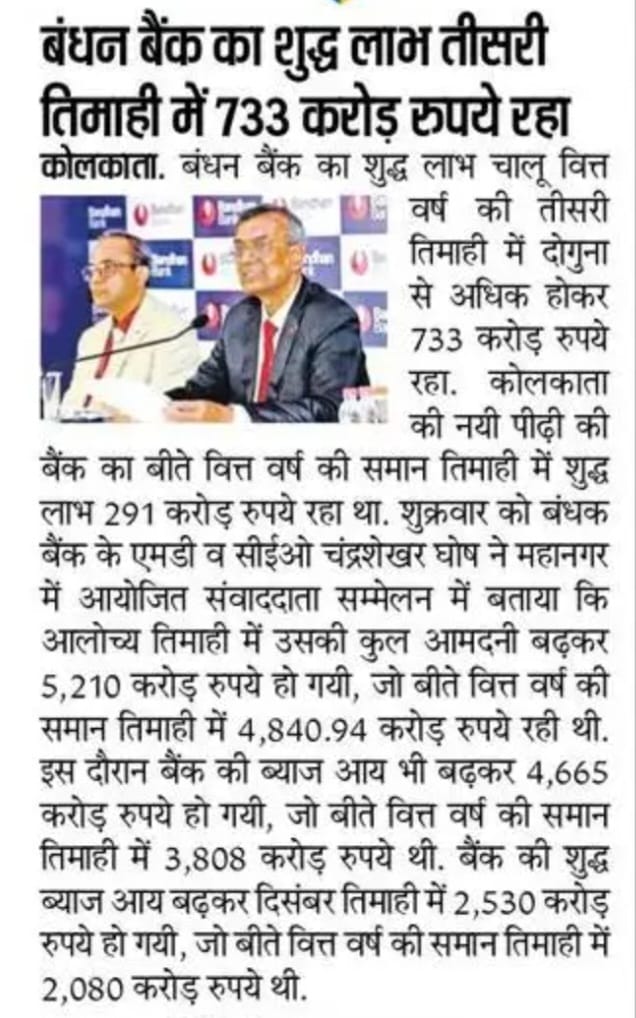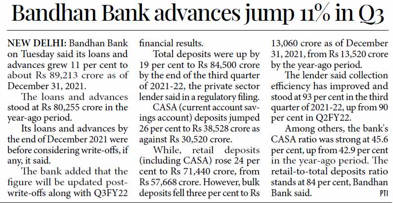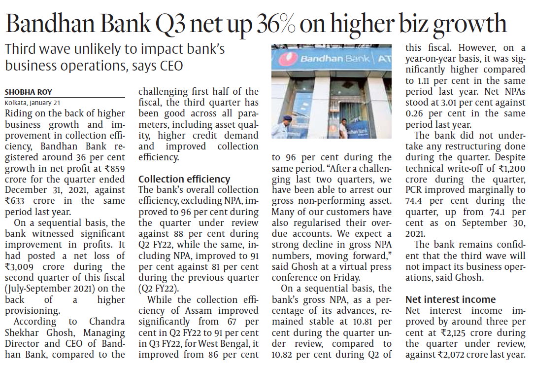 Bandhan Bank lending by 21% and deposits by 37%