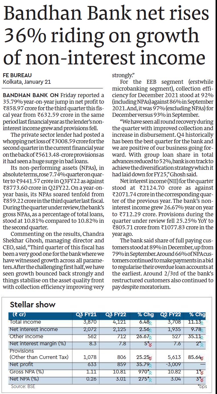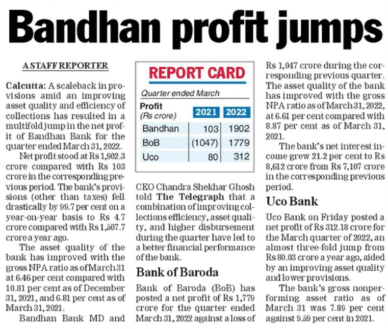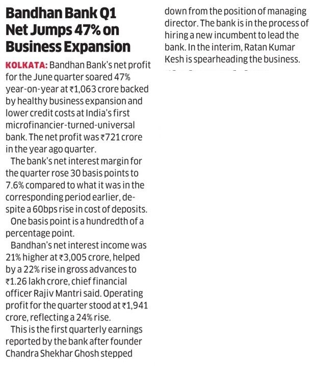 Read moreBandhan Bank FY20 net profit grown 54.96%(YoY)at Rs.3,024 crore after taking COVID 19 provision on standard advances
