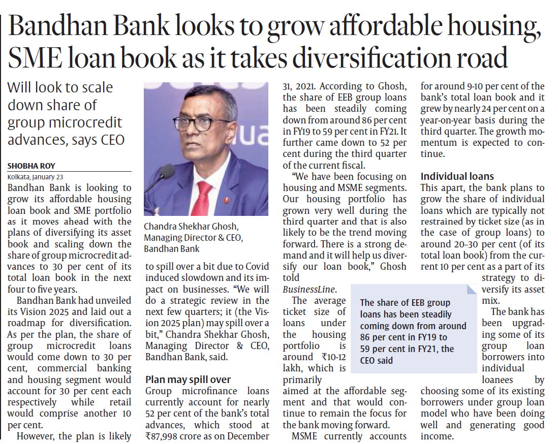 Bandhan Bank looks to grow affordable housing, SME loan book as it takes diversification road
