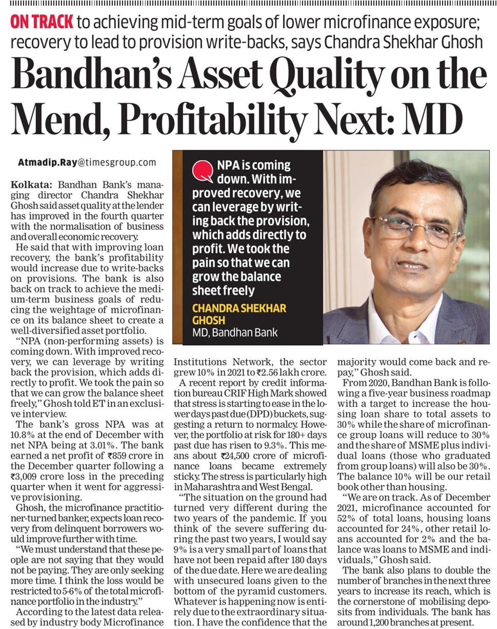 Bandhan Bank does not foresee much hiccups in microfinance collections once lockdown lifted