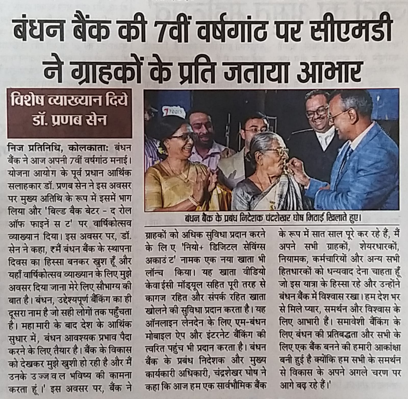 Bandhan Bank CEO thanks customers on its 7th anniversary celebration