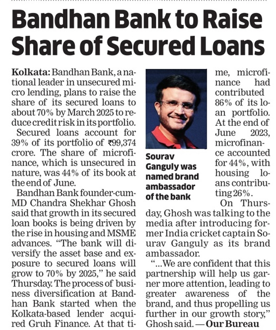 Bandhan Bank sees secured loans at 70% of all advances by 2025