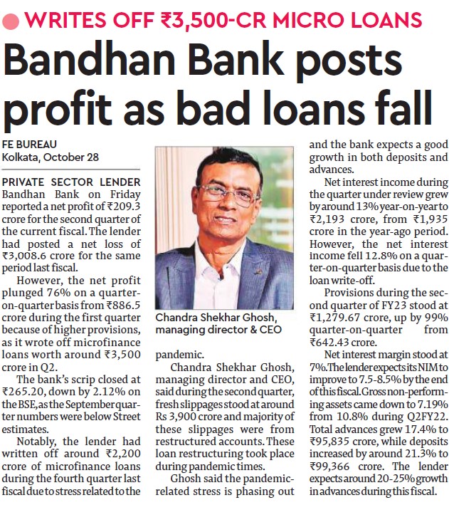 Bandhan Bank's net profit falls on high provisions; lender declares dividend of ₹1.50 per share