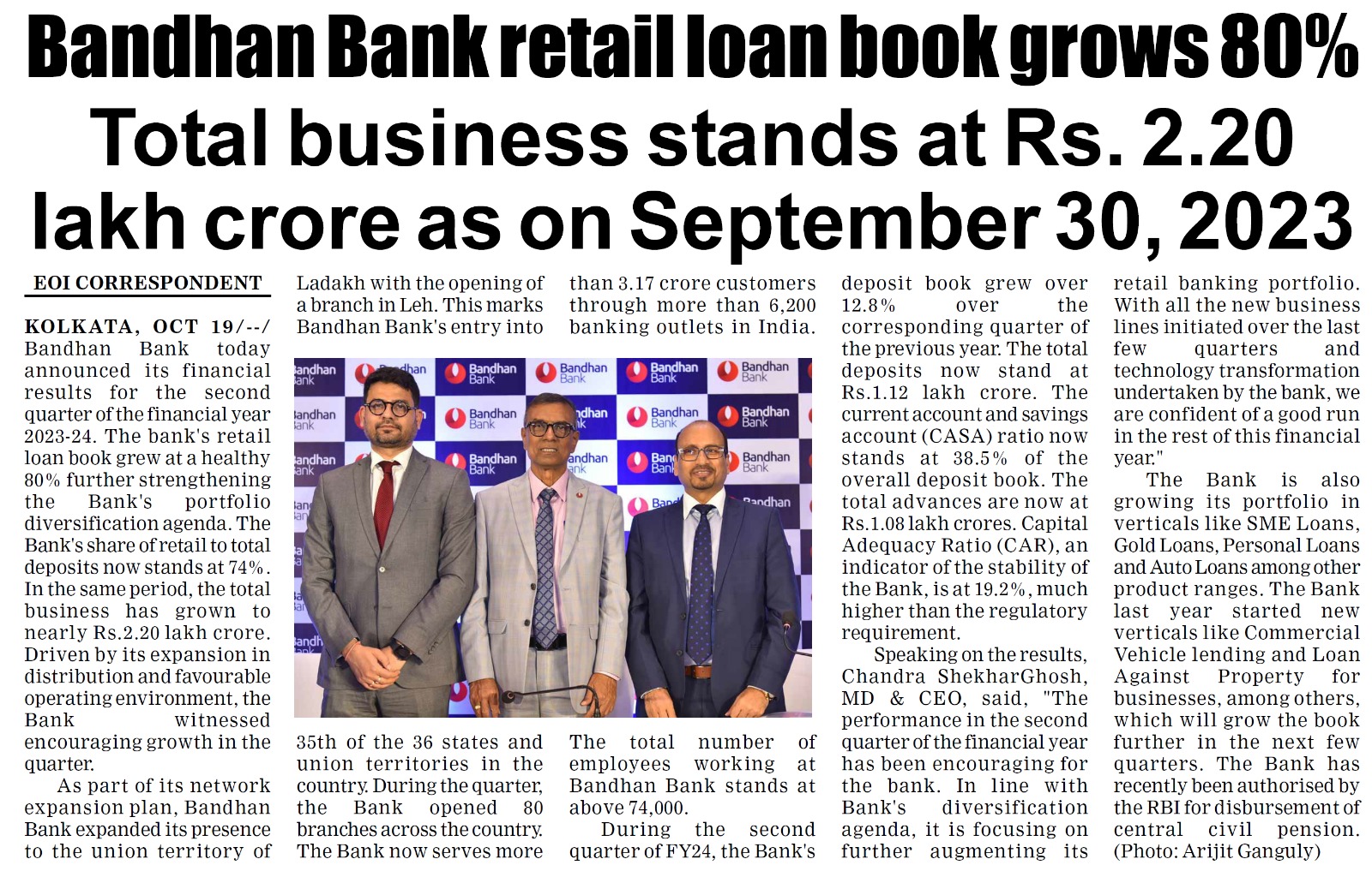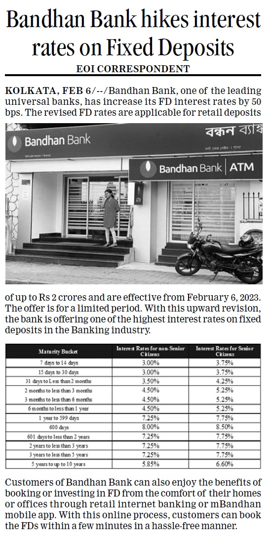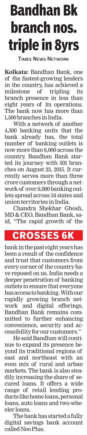Bandhan Bank opens nine new branches across 3 state