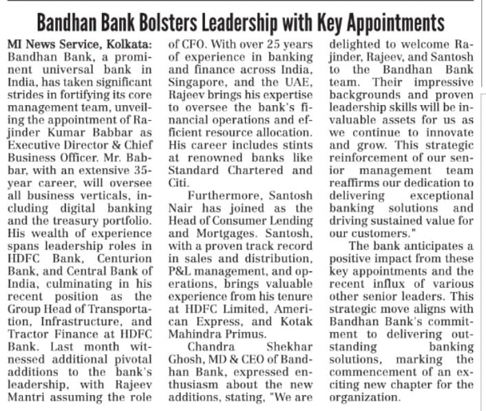 Read moreBandhan Bank appoints Rahul Parikh as Chief Marketing & Digital Officer