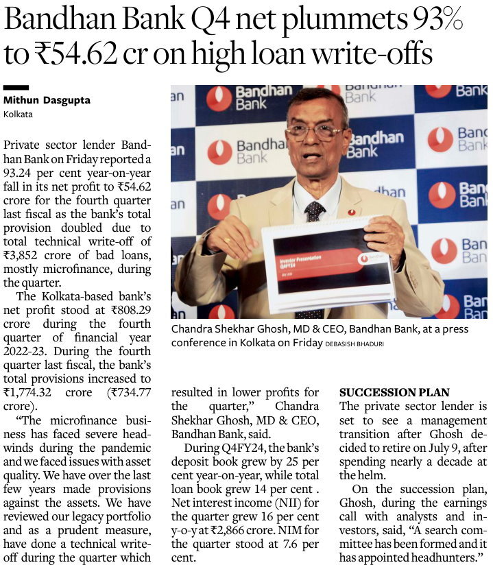Bandhan Bank Q4 Results: Lender posts PAT at Rs 55 crore on higher provisions; NII at Rs 5,189 crore