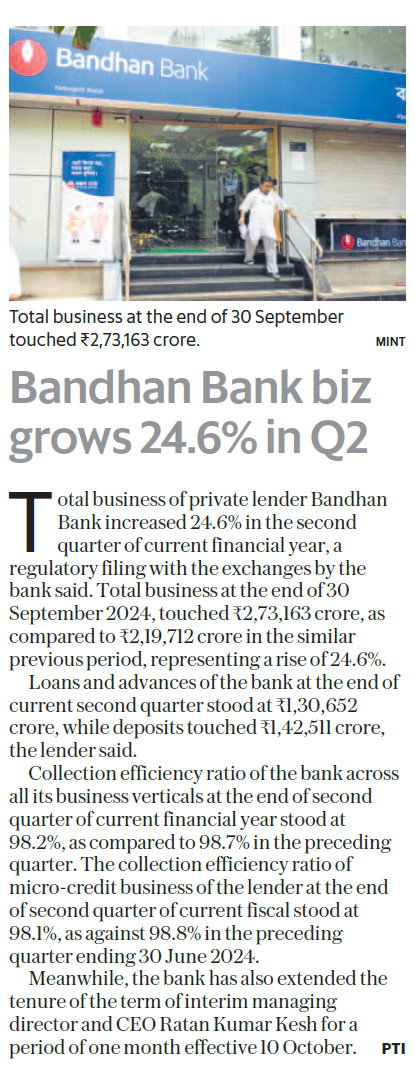 Bandhan Bank Q2 update: Lender reports 24.6% growth in total business