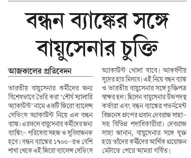 Bandhan Bank to provide banking services to Indian army.