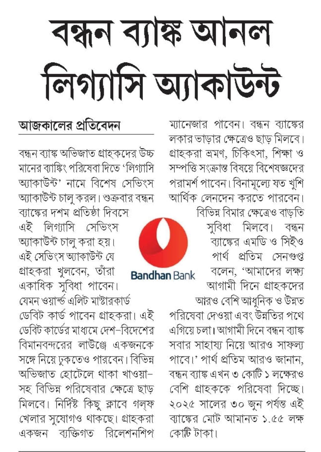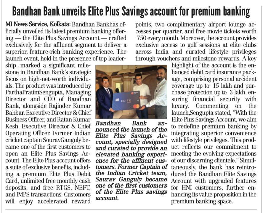 Bandhan Bank launches savings account for HNIs
