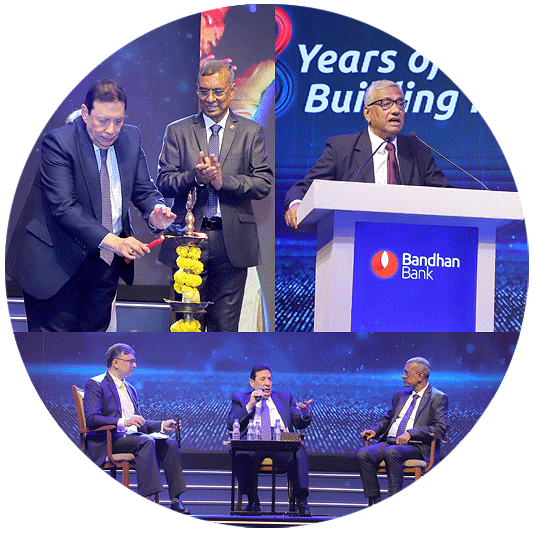 Bandhan Bank proudly celebrated its 10th anniversary on 23 August 2025, marking a decade of togetherness, tenacity, and trust, at the Biswa Bangla Convention Centre in Kolkata. The event was honoured by the presence of our Chief Guest, Shri Rajnish Kumar, former Chairman of SBI, who delivered the Anniversary Lecture on the theme “Bandhan Forever: How to Create an Everlasting Institution”.