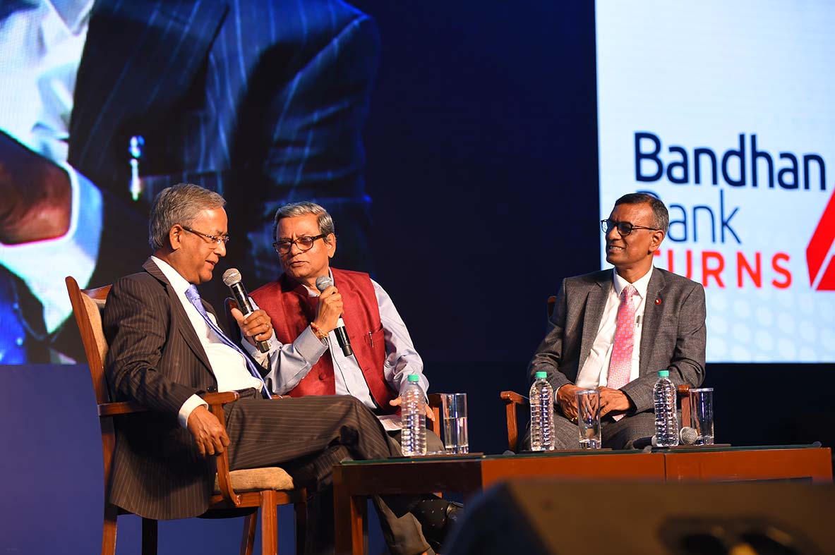 The evening saw an engaging chat between Mr. U. K. Sinha and Mr. Chandra Shekhar Ghosh, moderated by Mr. Tamal Bandyopadhyay, renowned business columnist and author. The conversation ranged from Mr. Ghosh’s exhilarating experience as a banker of four years to Mr. Sinha’s insightful views on the banking industry, at large.