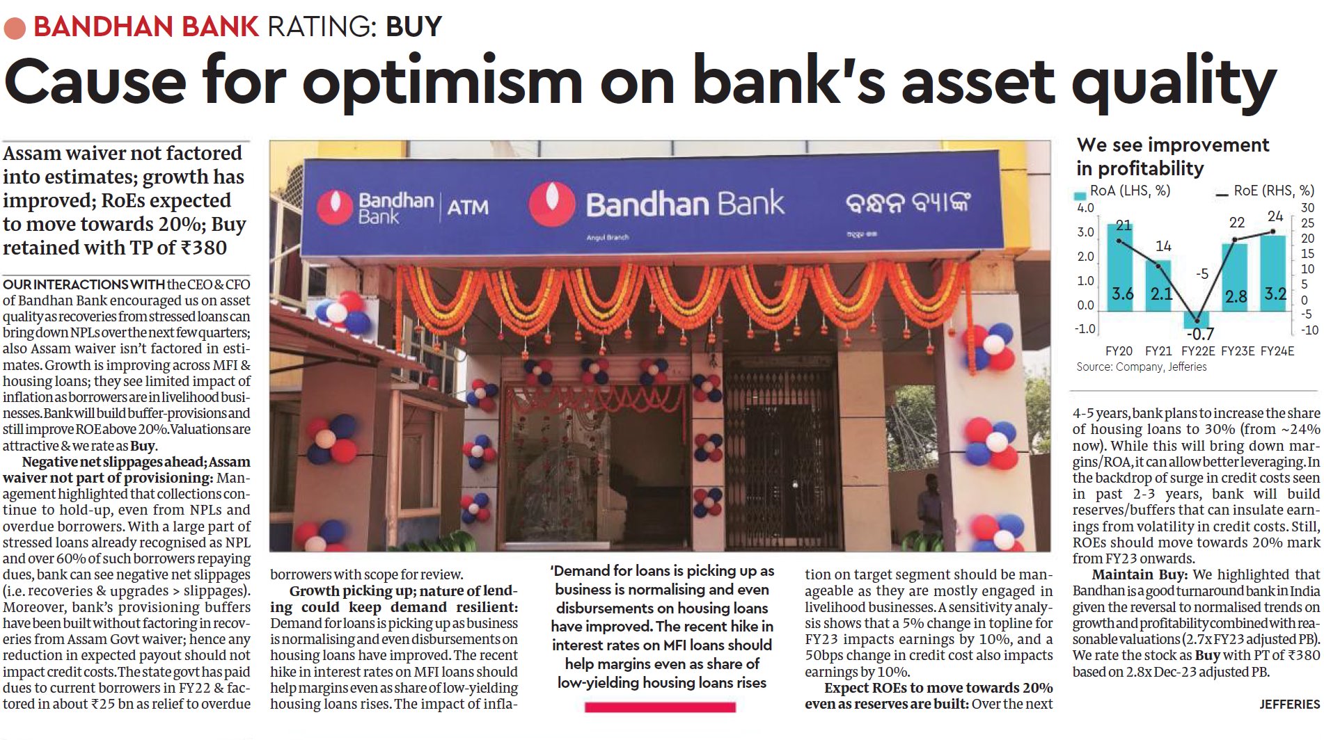Bandhan Bank lending by 21% and deposits by 37%