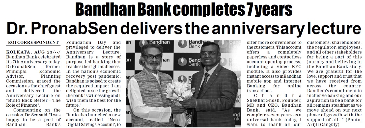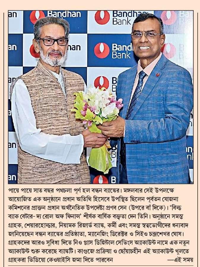 Bandhan Bank completes 7 years - Dr. Pronab Sen delivers the anniversary lecture