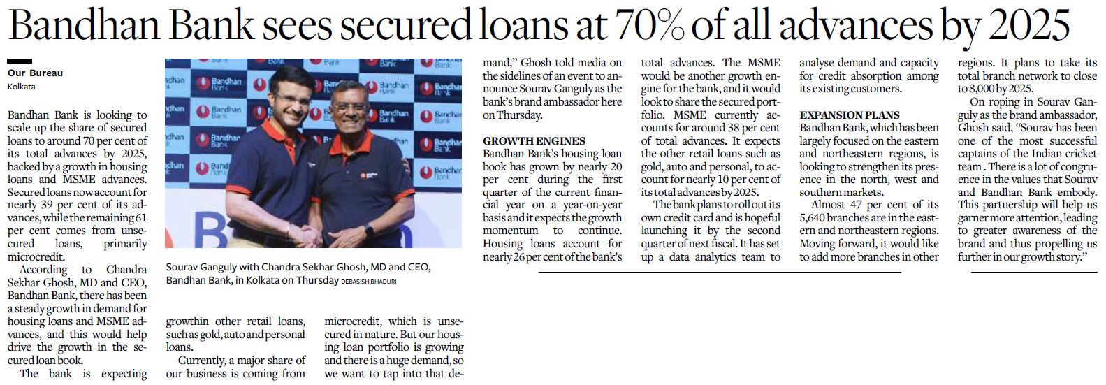 Bandhan Bank sees secured loans at 70% of all advances by 2025