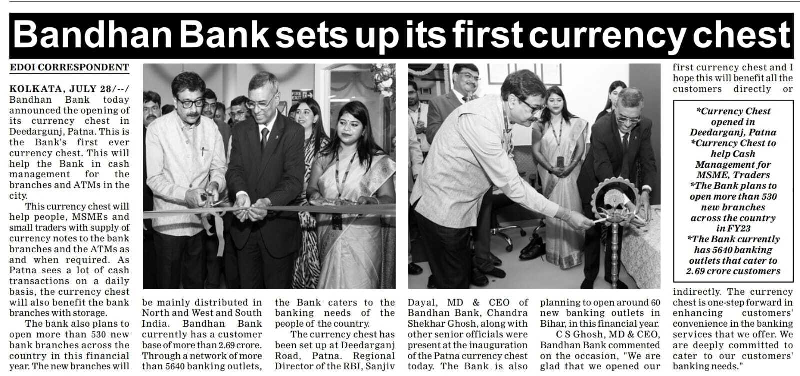 Bandhan Bank opens currency chest in Guwahati, largest in N-E