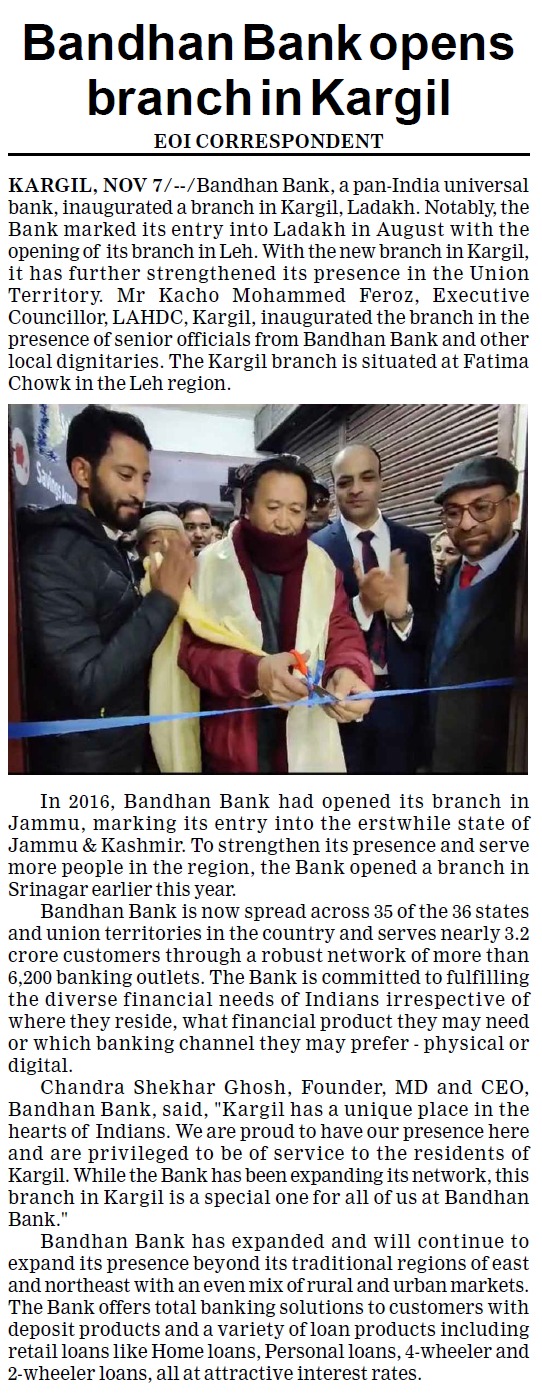Read moreBandhan Bank opens branches in Srinagar and Leh, Ladakh on its Eighth Anniversary
