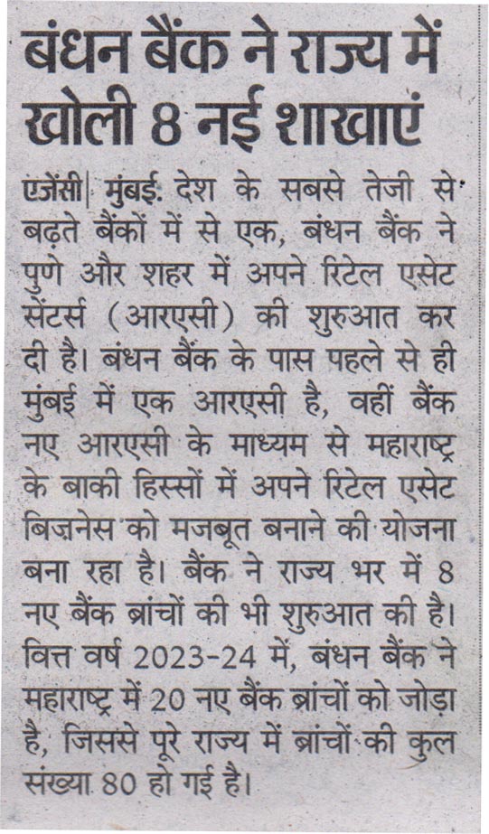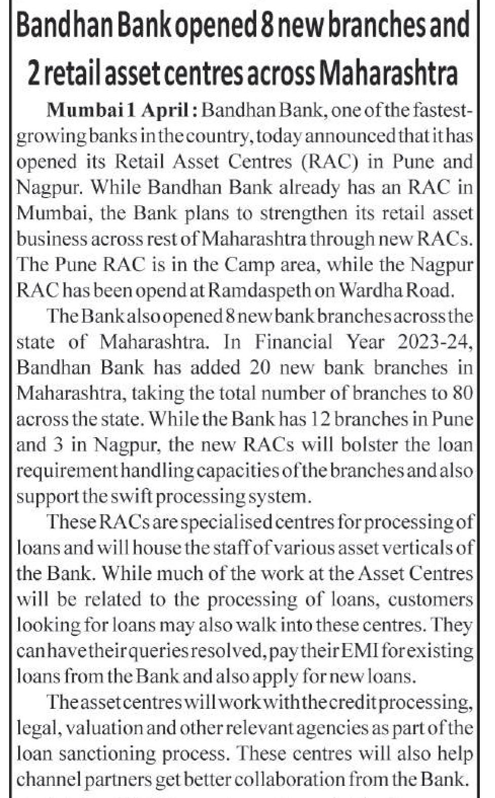 Read moreBandhan Bank opened 8 new branches and 2 retail asset centres across Maharashtra