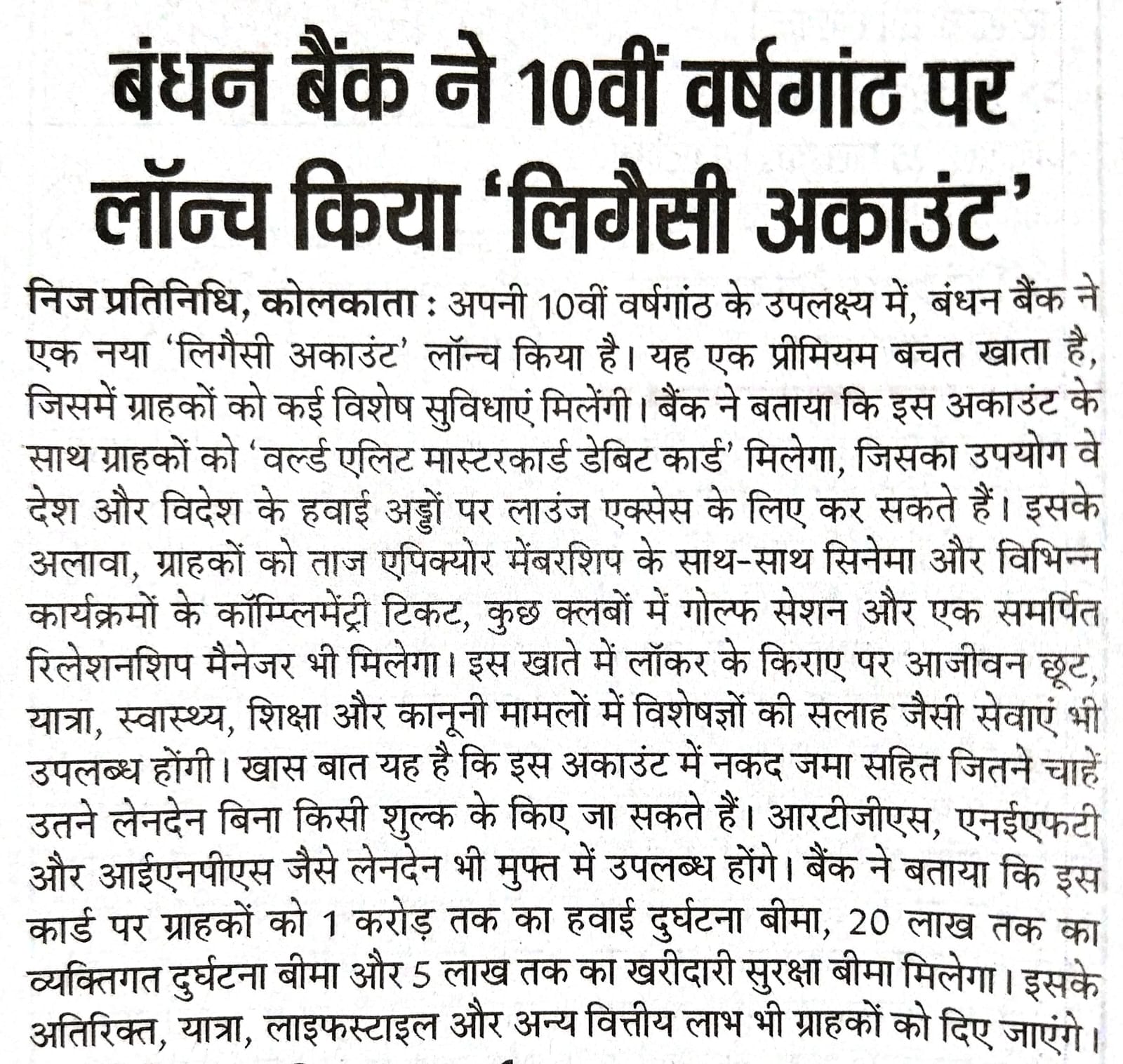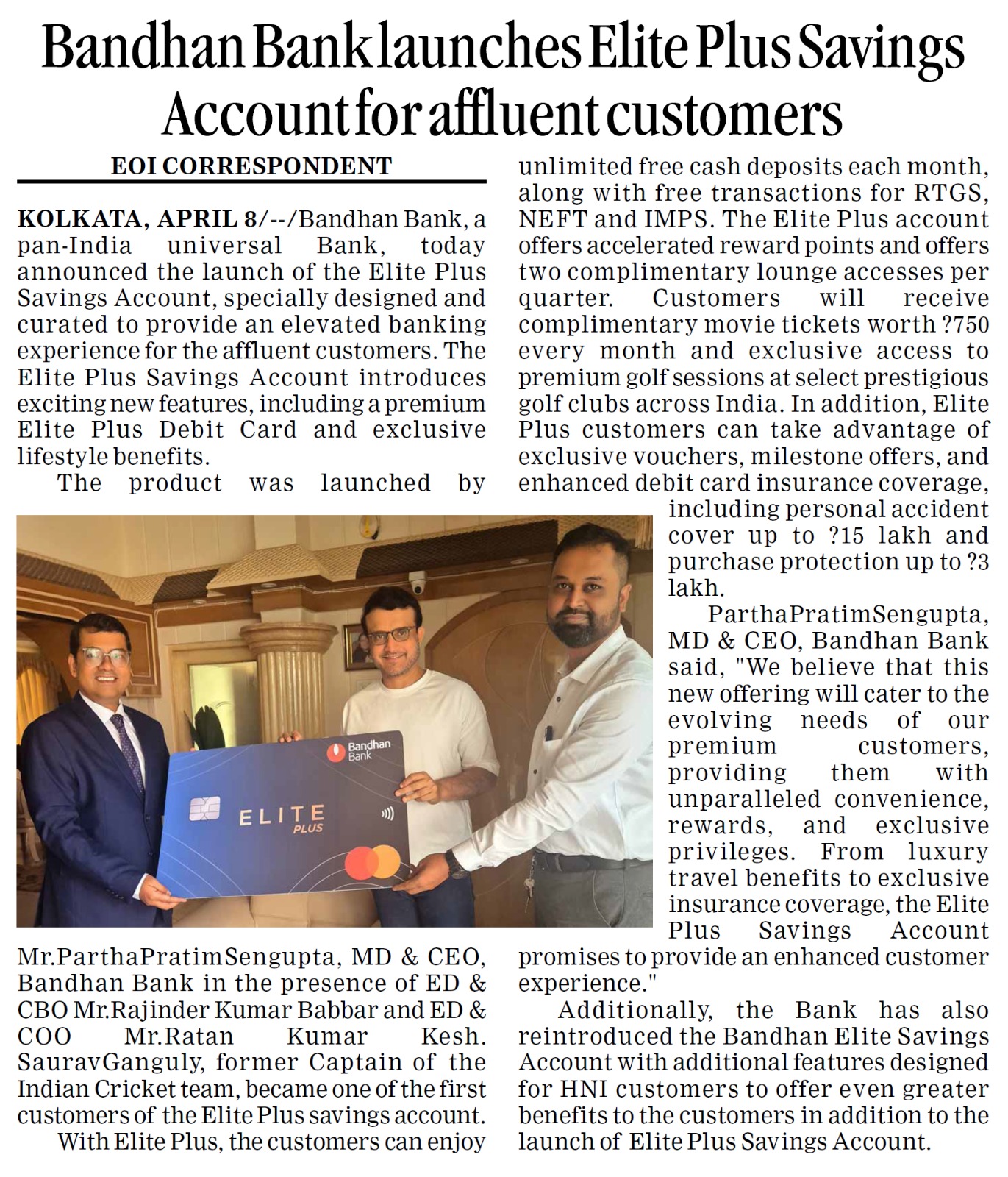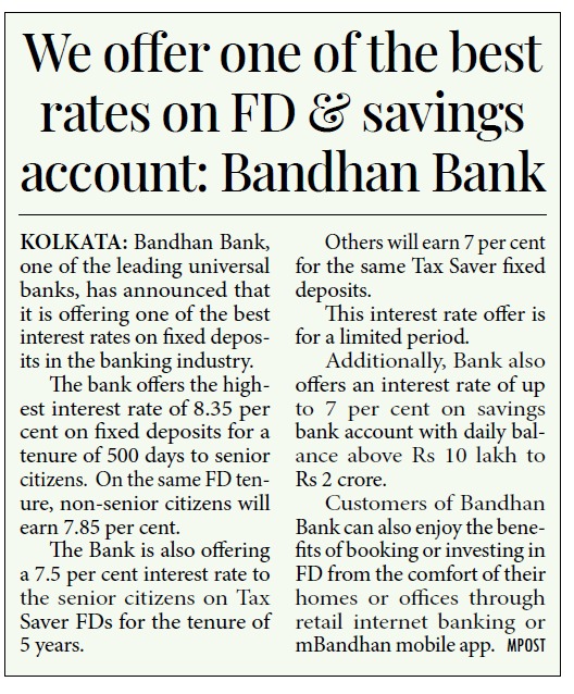 Bandhan Bank launches savings account for HNIs