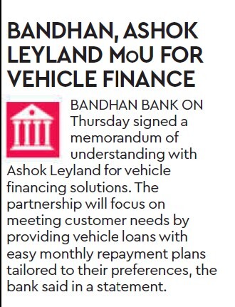 Bandhan Bank partners with Ashok Leyland for vehicle finance facilities