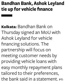 Read moreBandhan Bank partners with Ashok Leyland for Vehicle Finance facilities