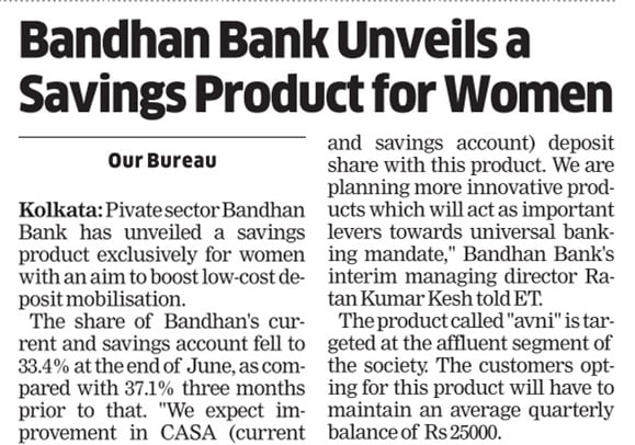 Bandhan Bank introduces new savings product 'avni' exclusively for women