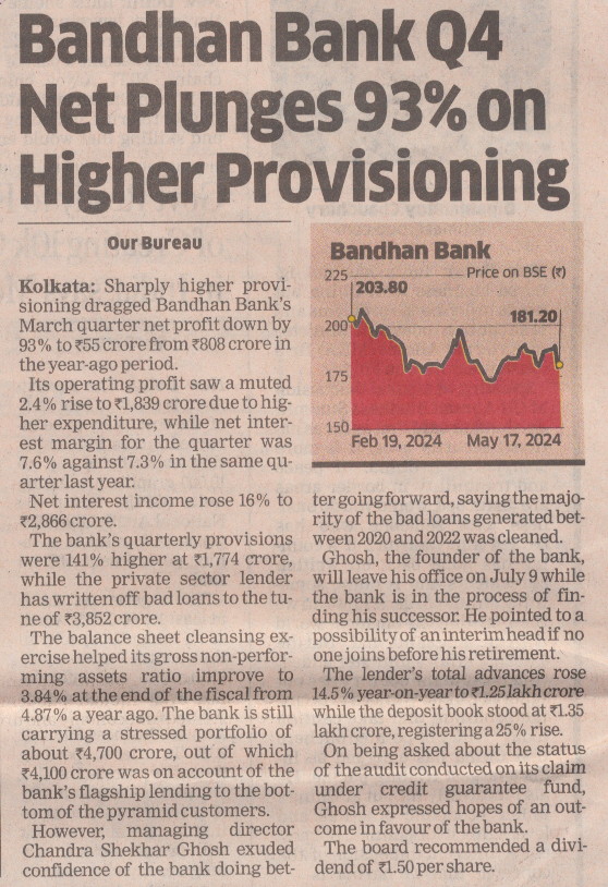 Bandhan Bank Q4 Results: Lender posts PAT at Rs 55 crore on higher provisions; NII at Rs 5,189 crore